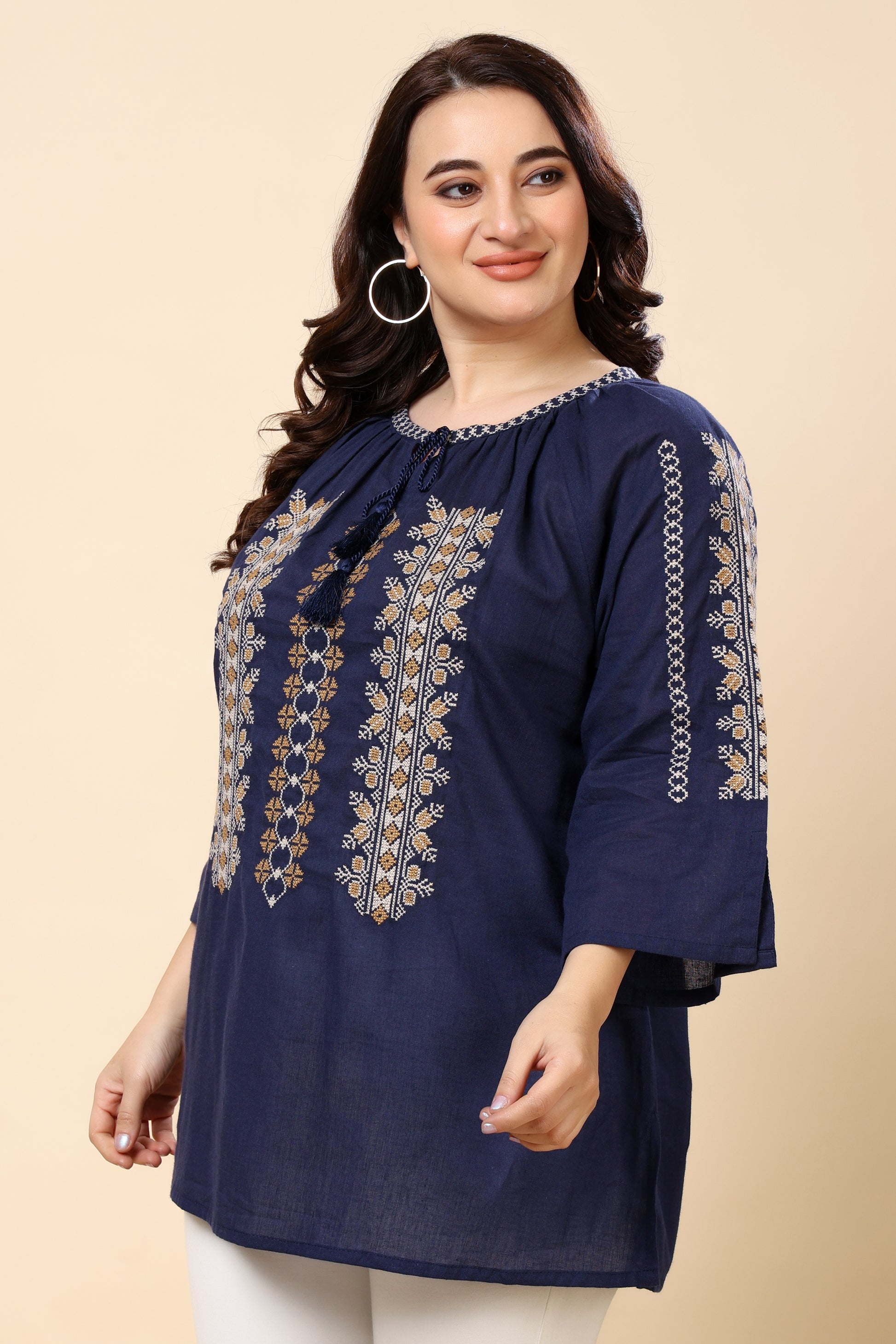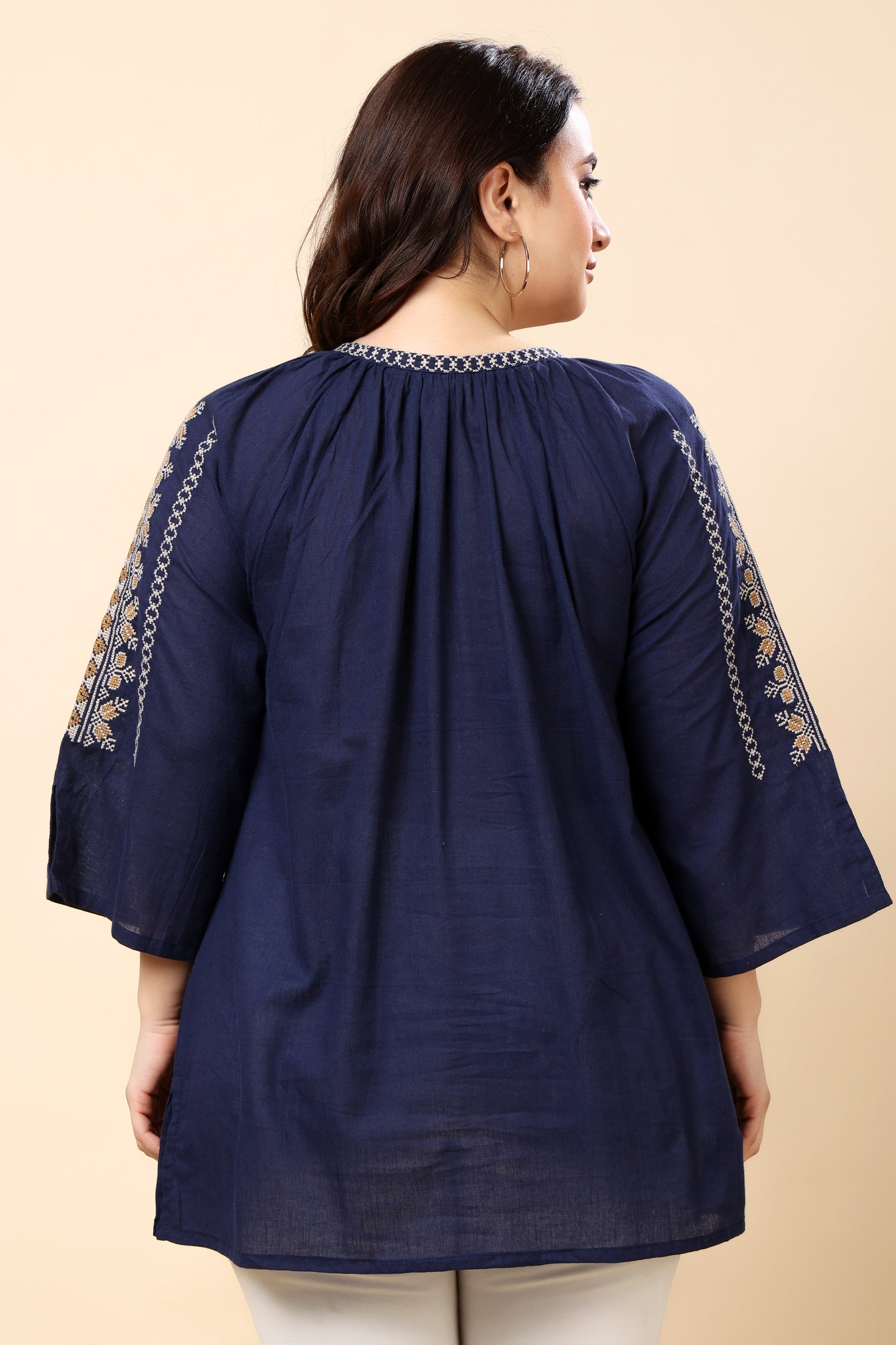 Navy Embroidered 3/4 Sleeve Top for Women (Sizes S to 6XL)