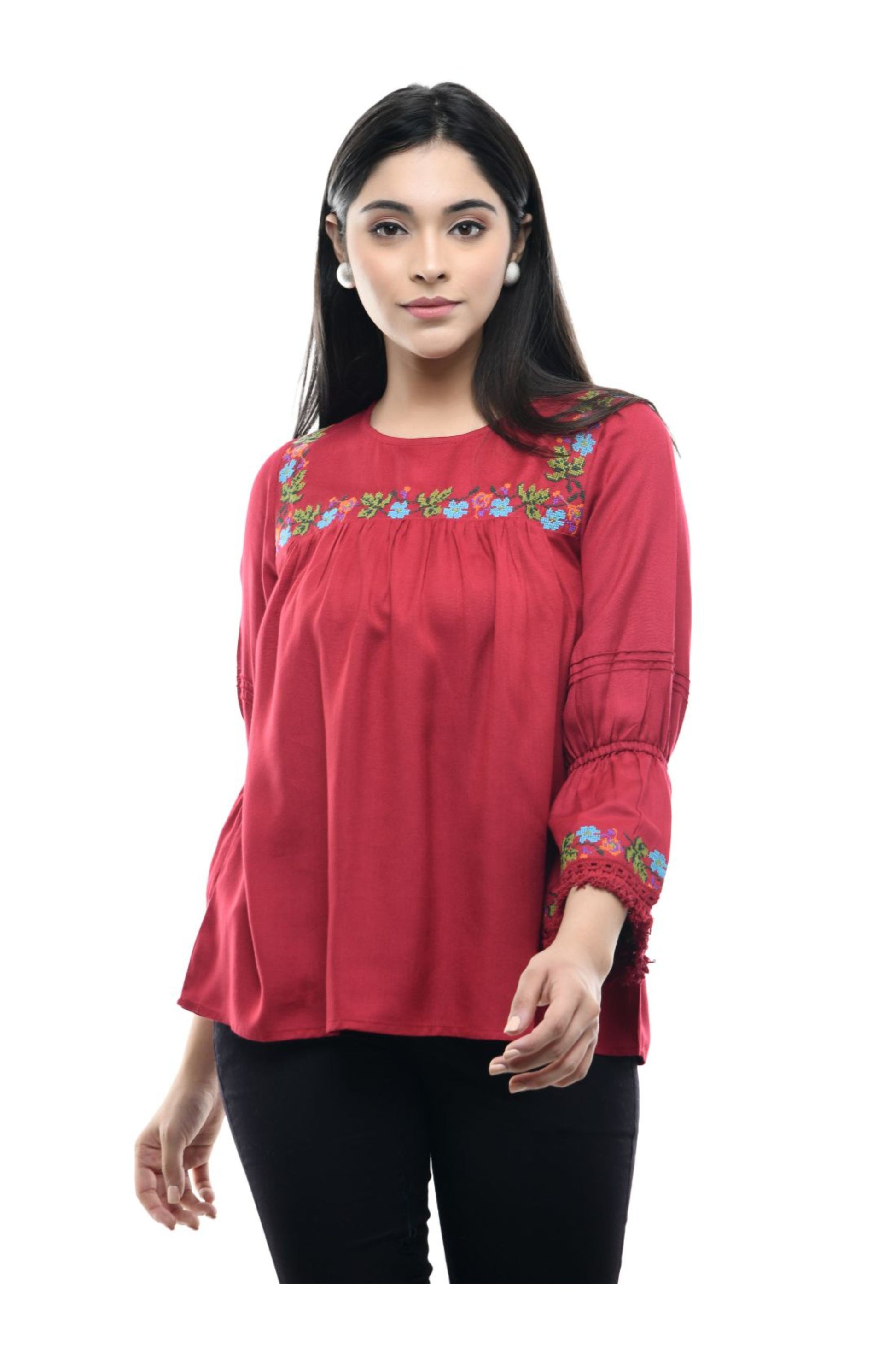 Brighten your everyday style with this red floral embroidered tunic top, crafted from premium soft cotton for a breathable and comfortable feel. The vibrant embroidery across the yoke and sleeves adds a delicate handcrafted charm that instantly elevates your look.